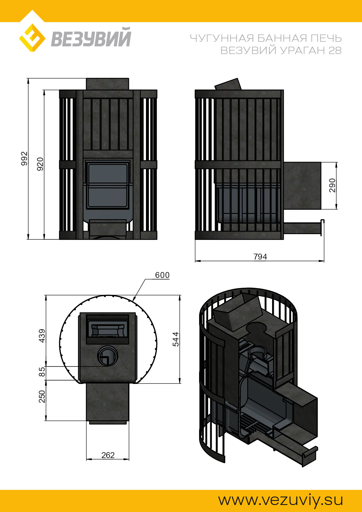 Договор заключается в момент оплаты Покупателем товара ТОЛЬКО в ОФЛАЙН-МАГАЗИНЕ. Делая предварительный заказ, Покупатель заверяет, что ознакомился и согласен с Политикой компании, она ему ясна и понятна.Печь для бани Везувий Ураган Ковка 28 (270)