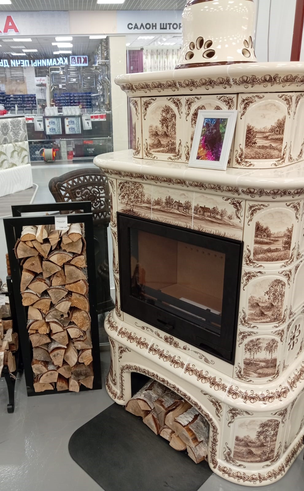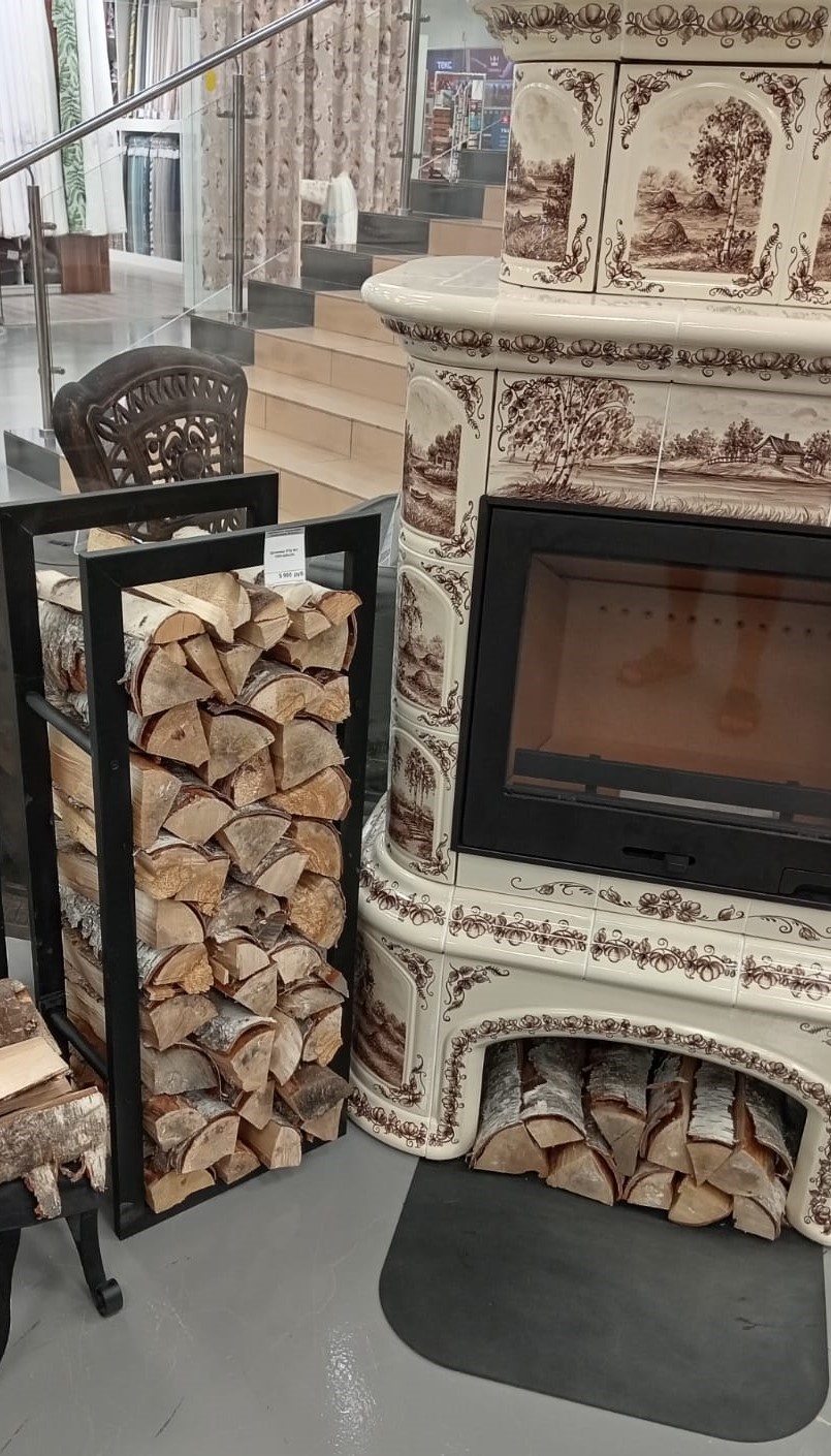 Дровница вместительная и в тоже время занимает мало места, однако всегда под рукой, легко и удобно достать поленья и положить в топку.