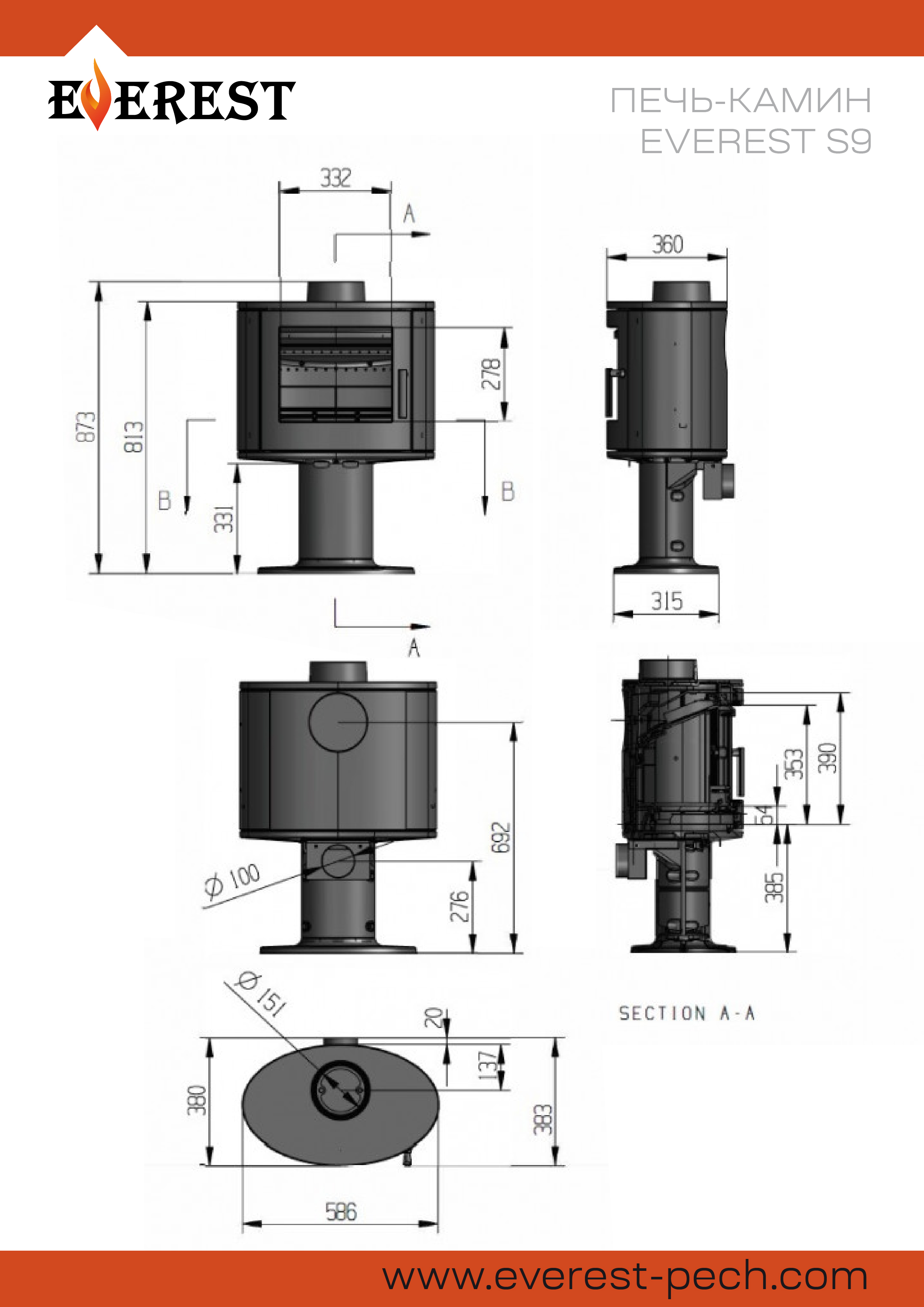 Печь-камин ЭВЕРЕСТ (EVEREST) S9