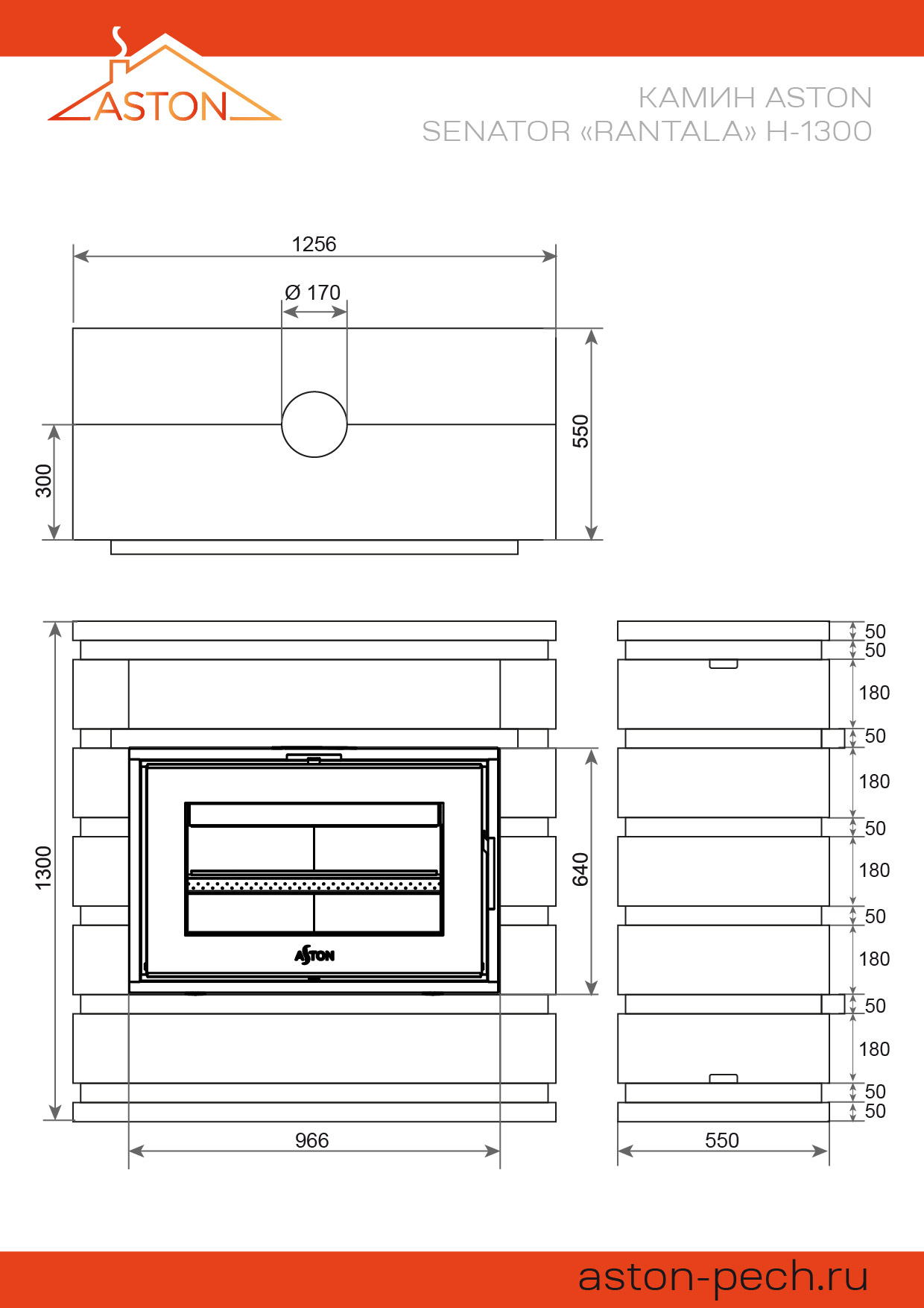 Камин комплектуется топкой серии АСТОН (ASTON) Сенатор (Senator). Топочная камера изготовлена из особо прочной котловой стали 09Г2С. Размер топочной дверки: 870х550 мм.