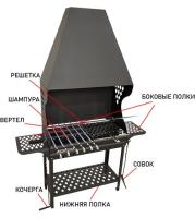 Для удобства транспортировки и хранения мангал имеет сборно-разборную конструкцию.