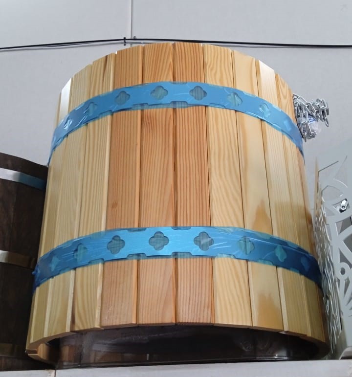 Обливное ведро Ливень от производителя Инжкомцентр ВВД (Россия) сделано из нержавеющей стали и имеют объем 36 и 50л, что значительно отличает их от других производителей. Обливное устройство идет в двух вариантах: без обрамление и в декоративном обрамлении из деревянных панелей.