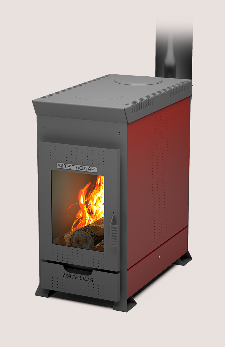 В печи Теплодар Матрица сочетаются надёжность и отличные технические качества. Печь поддерживает режим длительного горения до 8 часов на одной закладке дров. Кожух-конвектор печи обеспечивает быстрый, равномерный нагрев помещения и защиту от жесткого инфракрасного излучения от стенок топки. Небольшие габариты печи, в сочетании с особой углубленной конструкцией выхода дымохода, дают дополнительную экономию пространства и существенно расширяют возможности при монтаже печи: дымоход можно вывести как вверх, так и назад. Печь укомплектована дверцей с жаростойким стеклом.