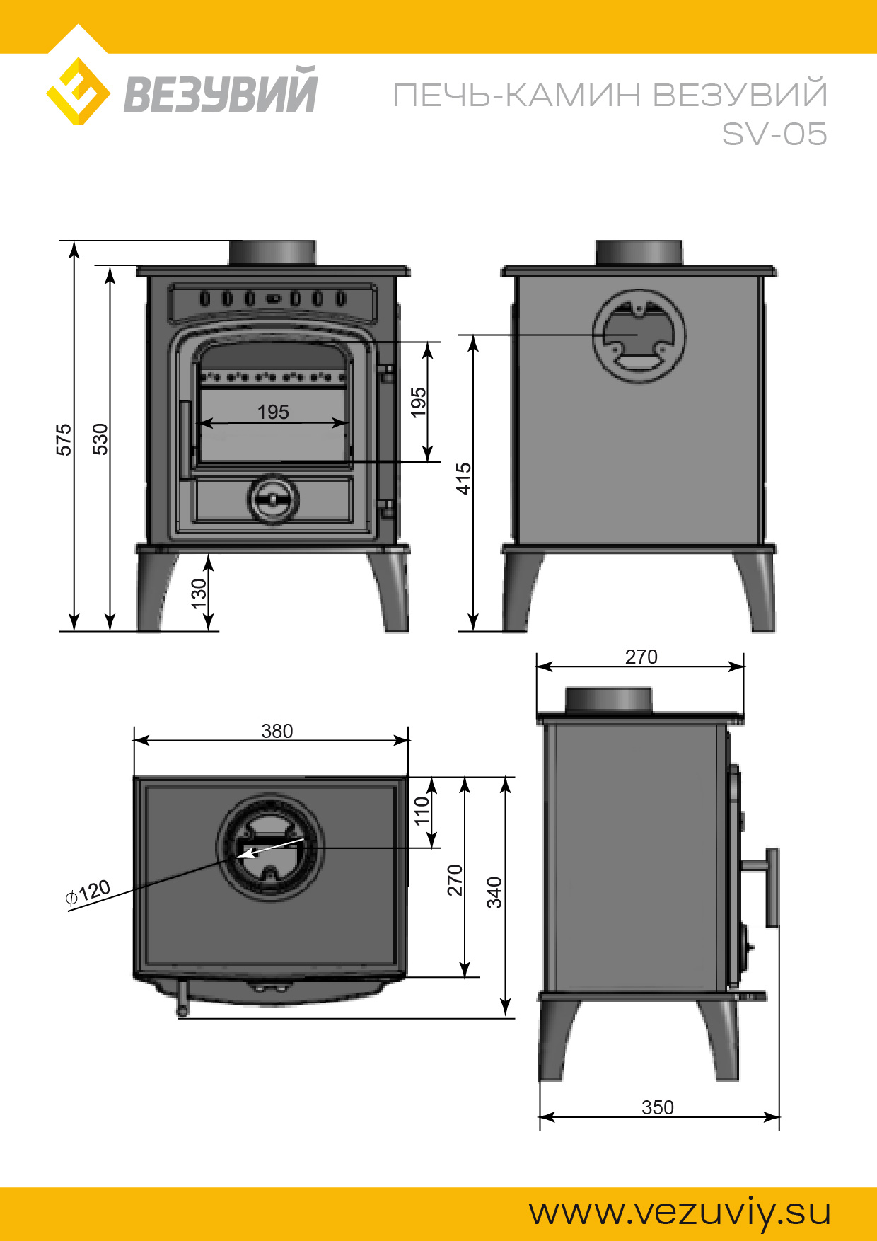 Договор заключается в момент оплаты Покупателем товара ТОЛЬКО в ОФЛАЙН-МАГАЗИНЕ. Делая предварительный заказ, Покупатель заверяет, что ознакомился и согласен с Политикой компании, она ему ясна и понятна.Печь-камин Везувий SV-05 "Антрацит"
