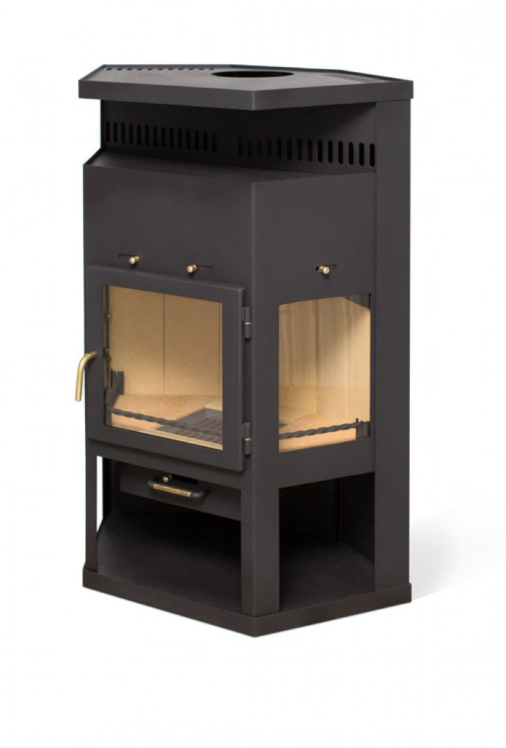 Повышенная мощность и весьма обширная камера сгорания. Оснащена выдвижным зольным ящиком и регулировкой подачи воздуха. Пристенно-угловая модель с универсальным подключением дымохода (заднее и верхнее). Большой обзор пламени. Идеально подходит для обогрева помещения площадью 55-110 м2. Максимальный размер поленьев до 70 см.