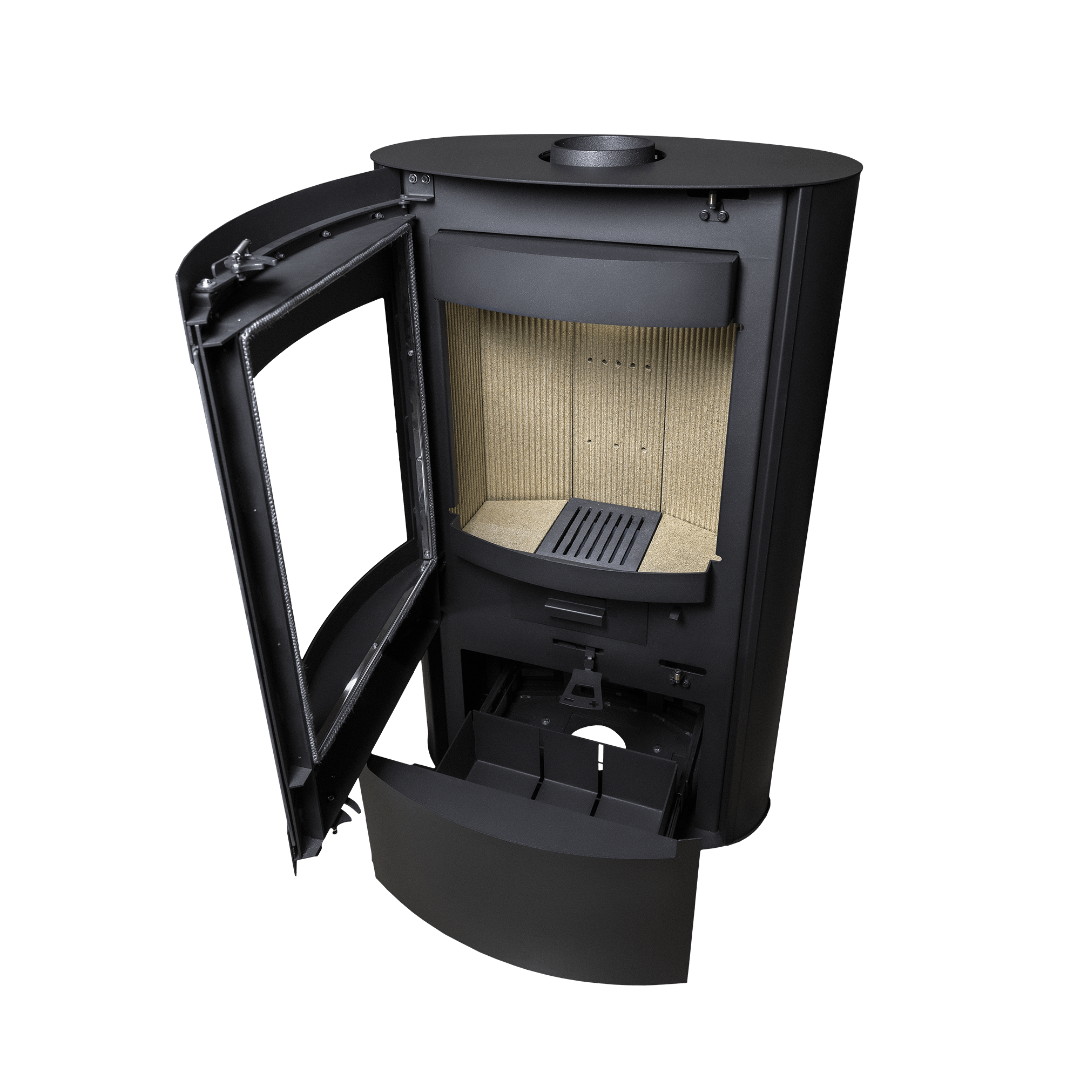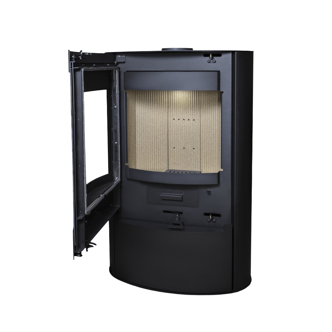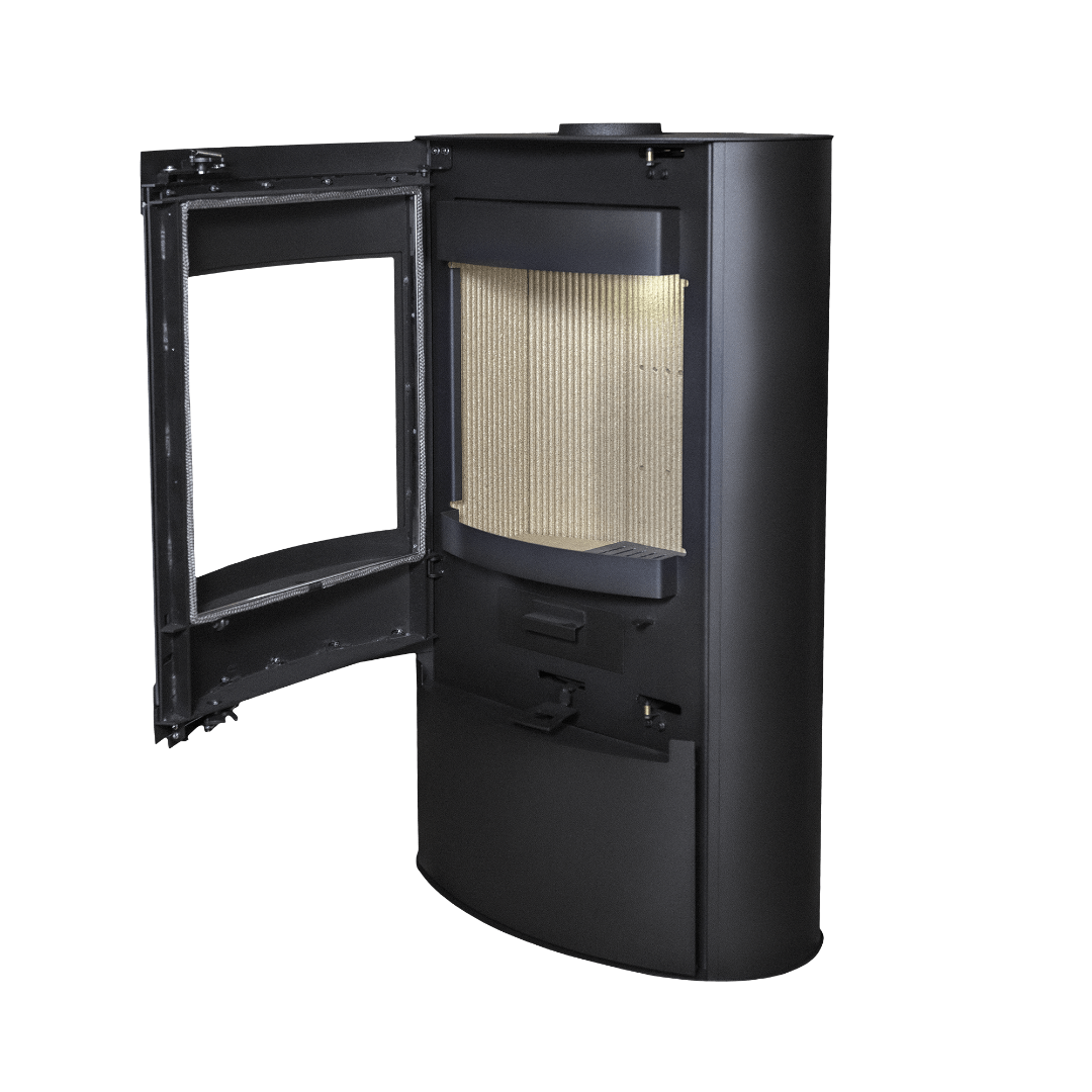 Современная, стильная печь-камин Свитязь имеет округлый дизайн, может быть расположена в углу, либо у стены. Идеально подходит для обогрева помещения площадью до 70 м2.