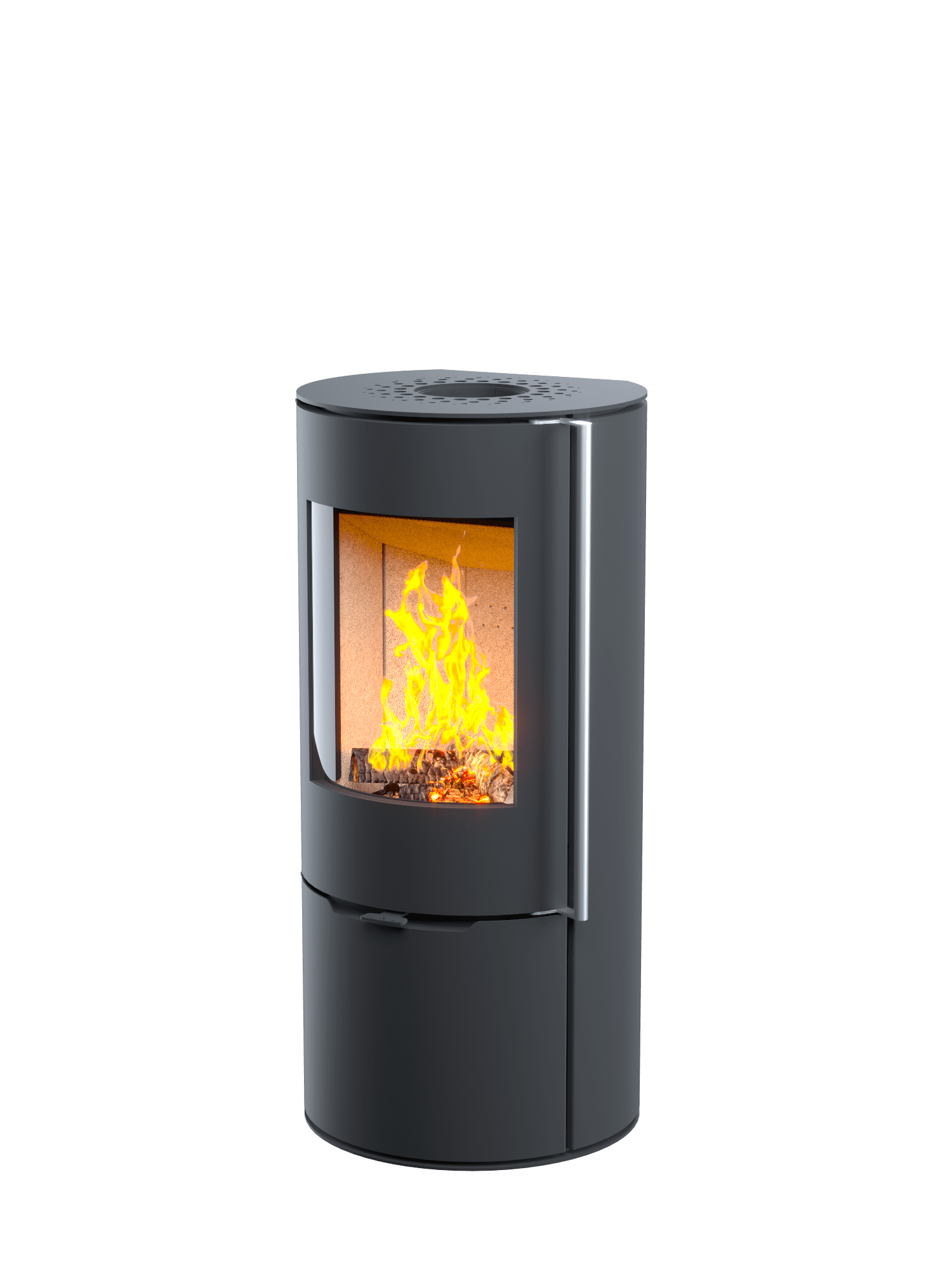 Топка отдает тепло через стекло и стальной корпус. Через стекло поступает порядка 20% тепла в виде лучистой, мягкой, расслабляющей энергии. Регуляторы подачи воздуха обеспечивают плавное изменение процесса горения от самого минимального до бушующего пламени. Герметичное закрывание дверки улучшает качество горения и регулируемость огня. Каждую модель печи-камина серии R1 можно укомплектовать каменной крышкой, плюс 10000 руб. к основной цене печи.