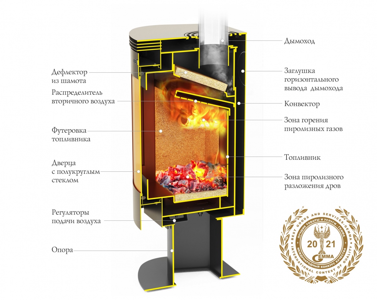 - Долговечность благодаря футерованному топливнику;