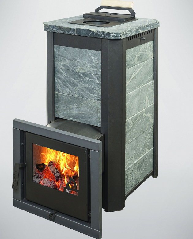 Печь Варвара Сказка сочетает в себе привлекательный внешний вид и эффективную конвекционно аккумулирующую печь, способную за короткое время прогреть помещение и оставить его теплым в течение длительного времени. Облицовка печи выполнена из натурального природного камня пироксенит. Данная горная порода способна долго удерживать тепло. Облицовка натуральным камнем убирает инфракрасное излучение, исходящее от корпуса печи, а регулировка конвекции предотвращает уменьшение влажности во время банных процедур, что создает мягкий и комфортный микроклимат в парной. Облицовка из натурального камня препятствует жесткому инфракрасному излучению, передаваемому стенками топки, поэтому тепло от поверхности печи получается мягкое и ровное.