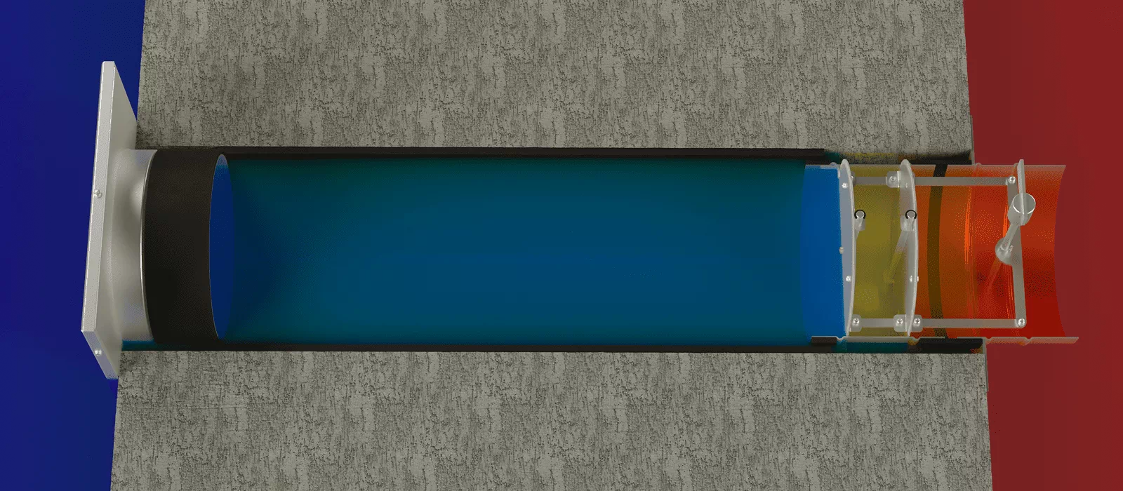 Использование двойного клапана в закрытом положении позволяет избежать образования «мостика холода» и конденсата в конструкции топок и печей-каминов в холодное время года при неиспользовании отопительного прибора, а также при этом снижает потери тепла в помещении. Для обеспечения герметичности клапан оснащен двумя силиконовыми уплотнителями. Все металлические части клапана выполнены из нержавеющей стали.